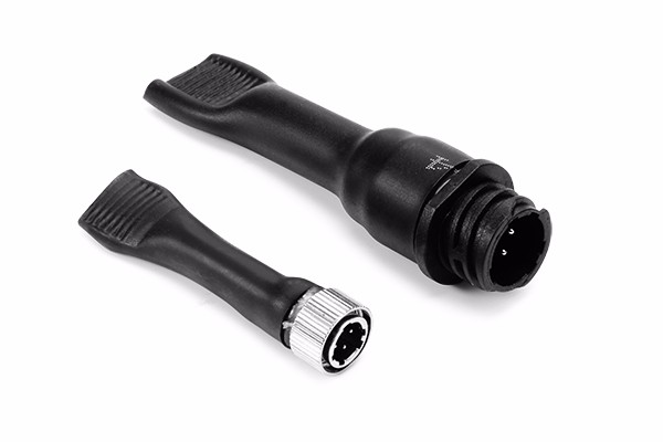 3、感应线在对接过程中,请注意公母接头针脚顺序,对准孔位轻轻插入再顺时针锁紧螺环即可(逆时针方向解锁)。